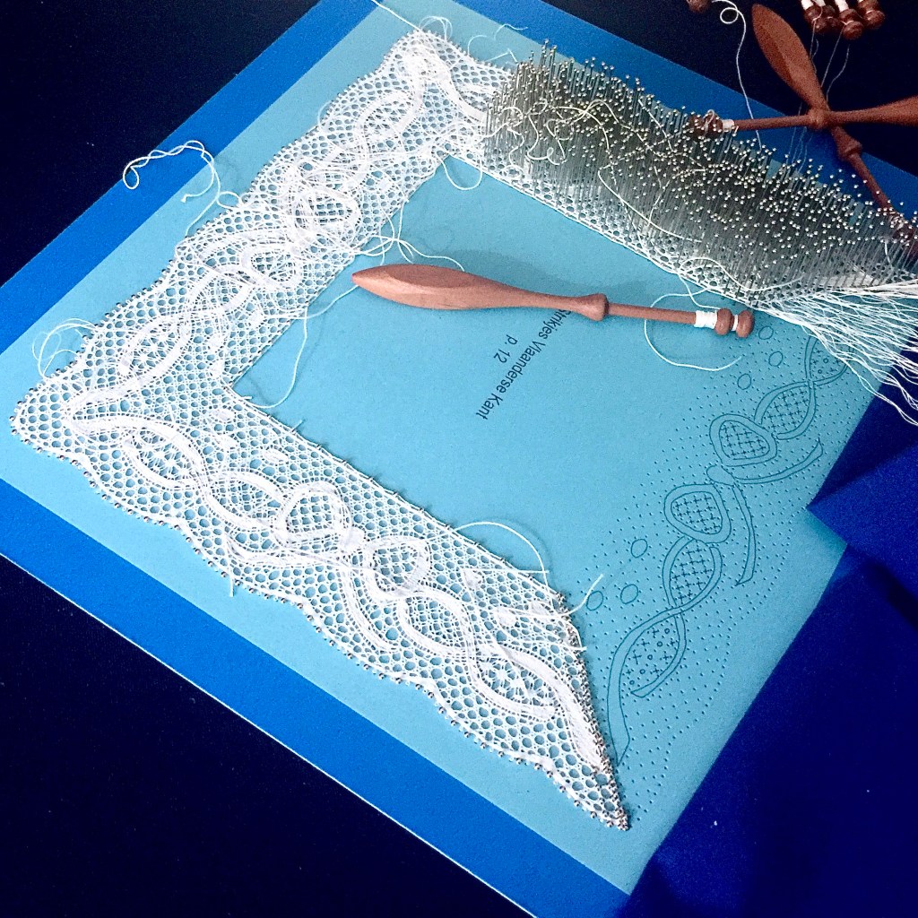Keeping track of where exactly you are in the pattern is quite challenging. And because the thread is so fine and the pins are so incredibly close together it is really difficult to see where exactly you are. Especially if you only work on the lace intermittently.