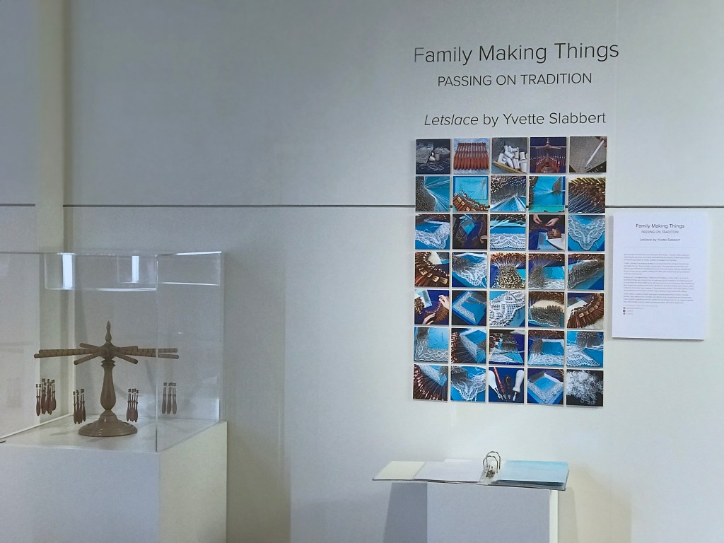 I took process photographs while I made the Strikjes piece. The mounted photographs – Instagram style – give viewers a good idea of how lace is made. The humble bobbin tree that my dad turned, stands proud under a dome and looks like a precious piece of art. Viewers find the tree and its purpose especially interesting.